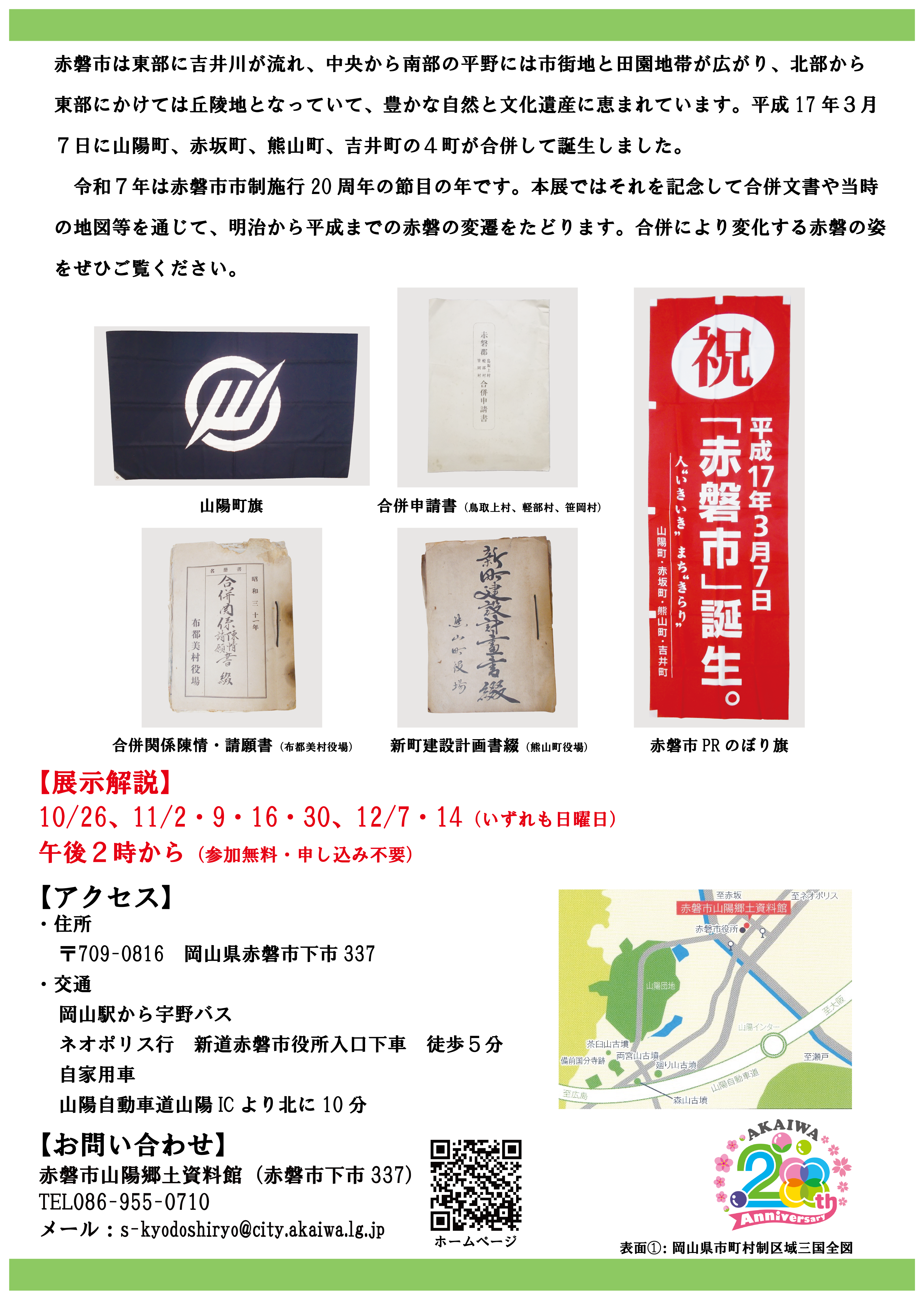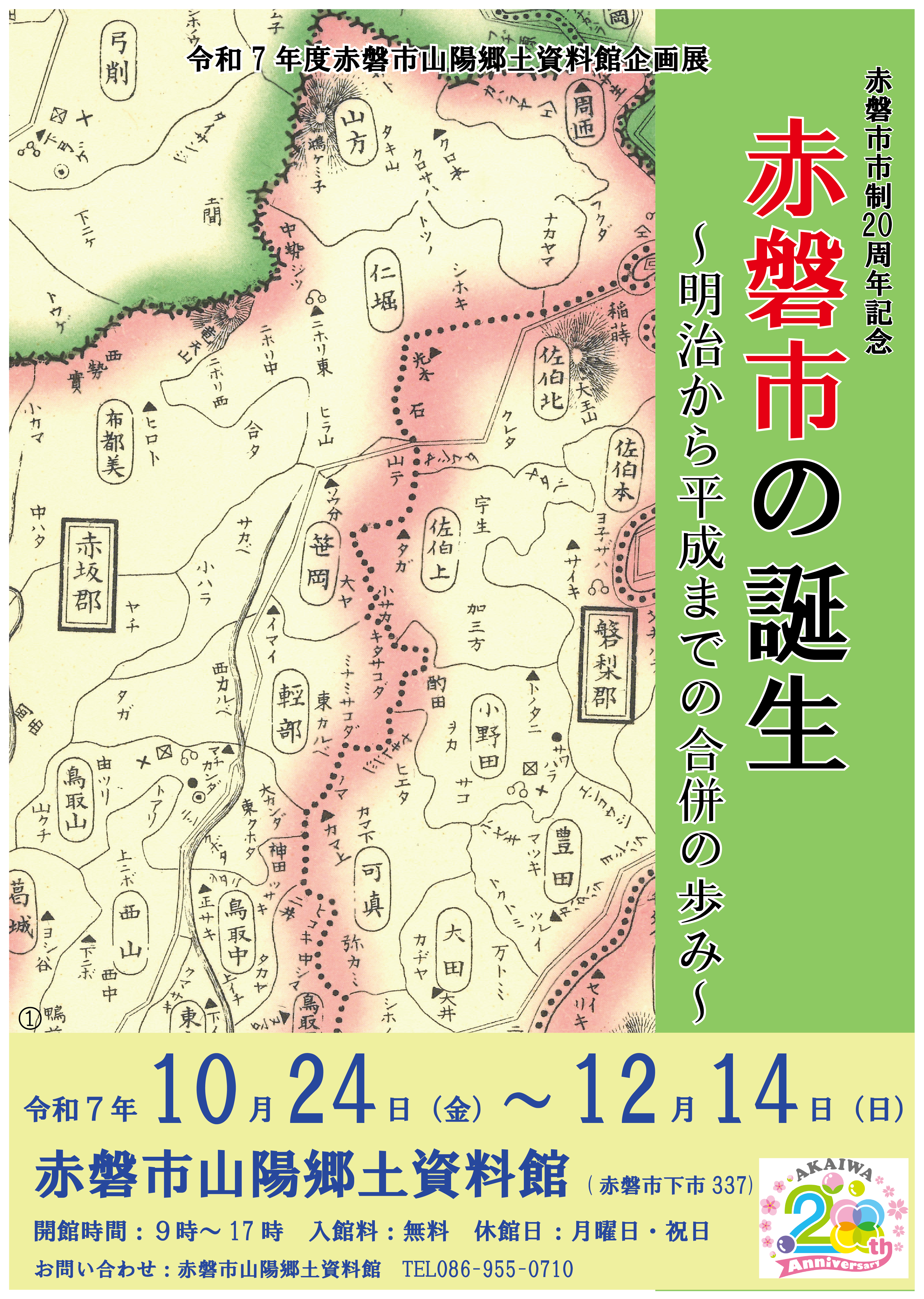 令和7年度山陽郷土資料館企画展「赤磐市の誕生~明治から平成までの合併の歩み~」を開催します